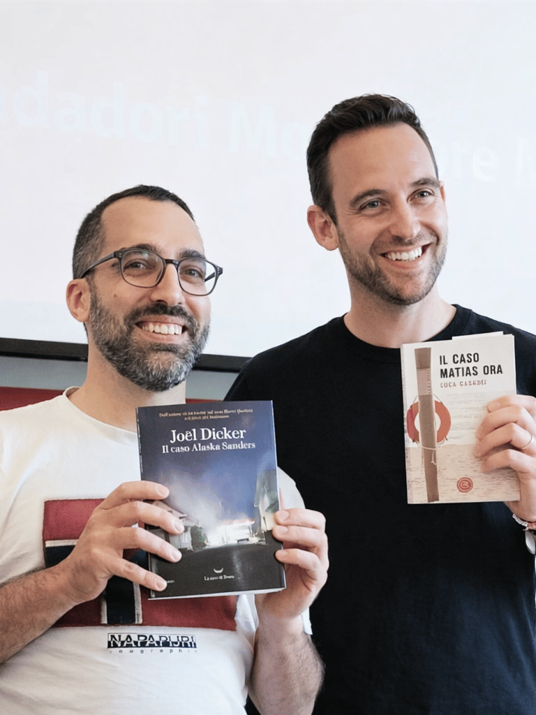 Ho incontrato Joel Dicker a Milano il 23 maggio 2022 in occasione della presentazione del suo romanzo Il caso Alaska Sanders alla Libreria Mondadori di Piazza Duomo. Proprio quel giorno avevo ricevuto in anteprima la prima copia de Il caso Matias Ora, che sarebbe uscito ufficialmente il mese successivo. Una bella fortuna, no? Sono riuscito a incontrarlo al termine della presentazione, a donargli il mio romanzo, a scambiare qualche chiacchiera in francese e a scattare una foto insieme. Cosa mi piace di più di Joel Dicker? La capacità di creare intrecci complessi con diversi piani temporali, la fluidità di scrittura, l’imprevedibilità delle trame.